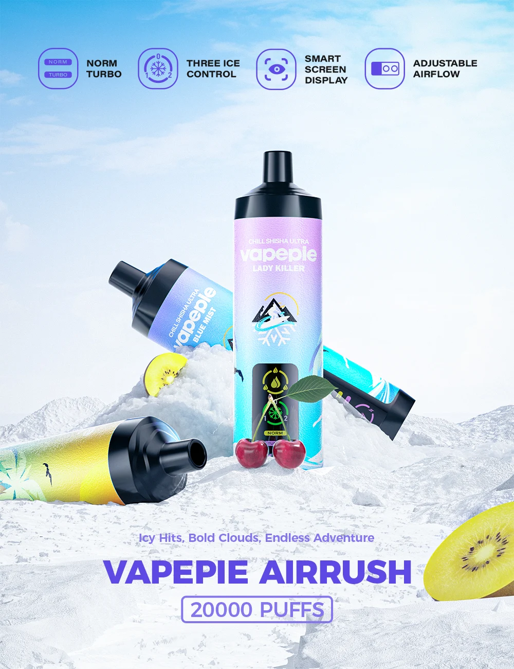 Experience the VAPEPIE AirRush 20000, built for powerful performance, smooth clouds, and a refreshing cooling experience.