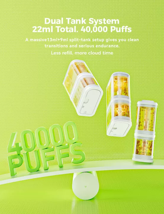 With support for up to 40,000 puffs, this long-use device is built for reliability and convenience — no setup, no adjustments needed. Simply unbox and enjoy stable performance from the first draw to the last. Ideal for situations where low output and quiet operation matter most.